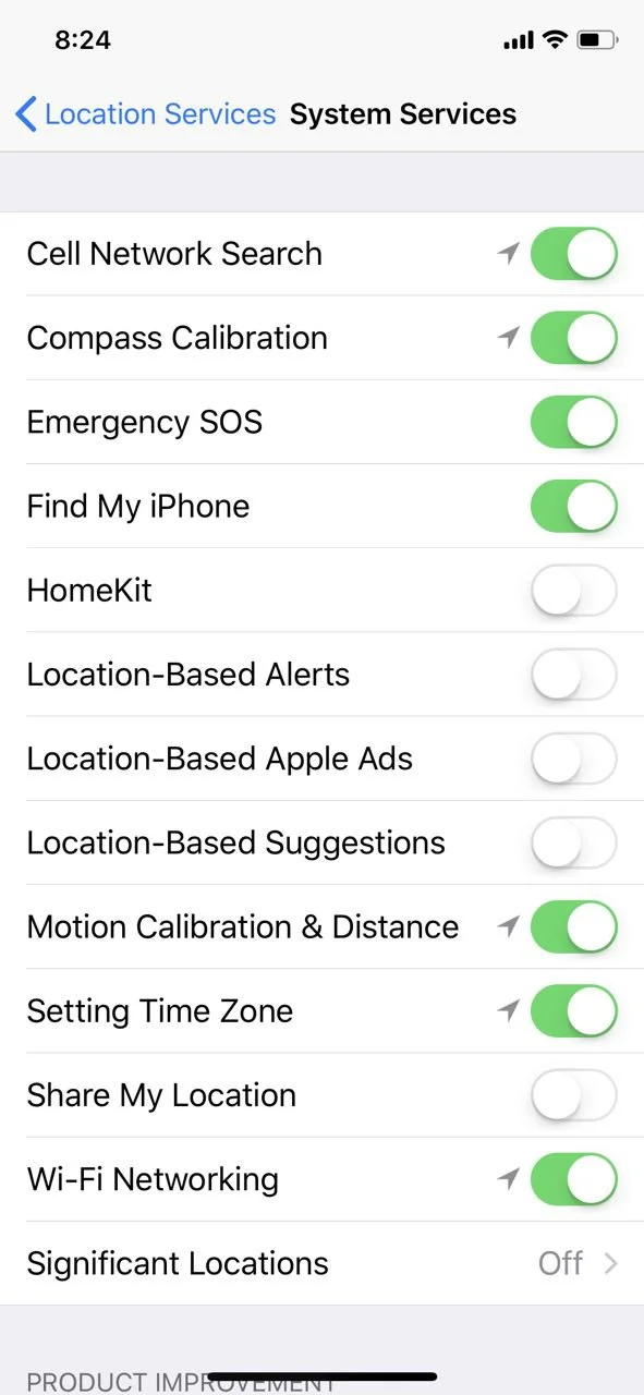 2.) From here you can turn off services completely, select which apps would use your location, or change settings for your location sharing.